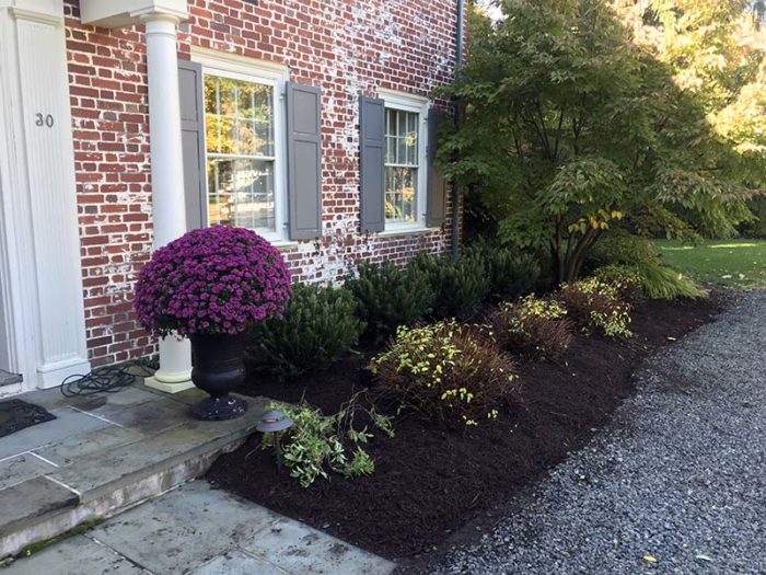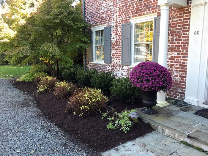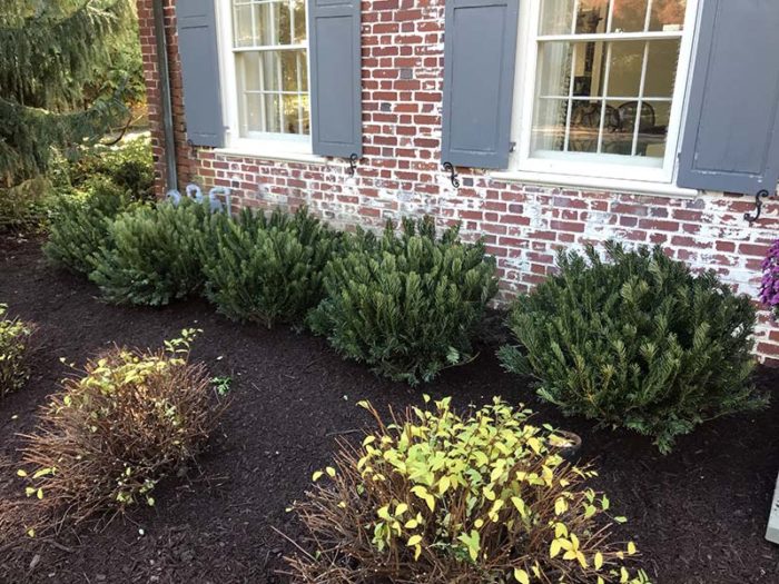 CMG’s landscape designer, Erik, helped the homeowners of this cozy cottage with boxwoods being damaged from snow and ice falling from the steep roof. Erik recommended lining the foundation with Duke Gardens Japanese Plum Yews, a graceful, finely textured evergreen shrub with a spreading, mounded habit. Its compact size is perfect for small gardens, low hedges, or borders and its flexible branches will help withstand the punishing snow.