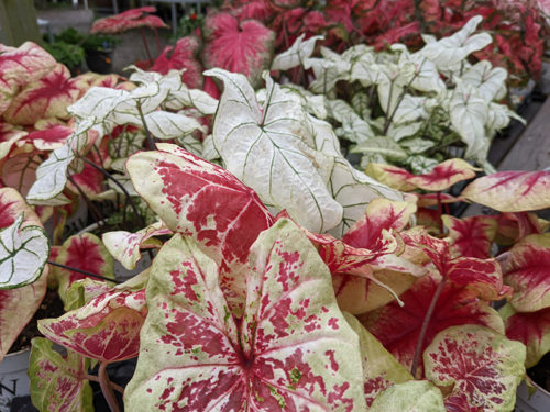 | Caladium | Dusty Miller | Mimulus | Sweet Potato Vine |